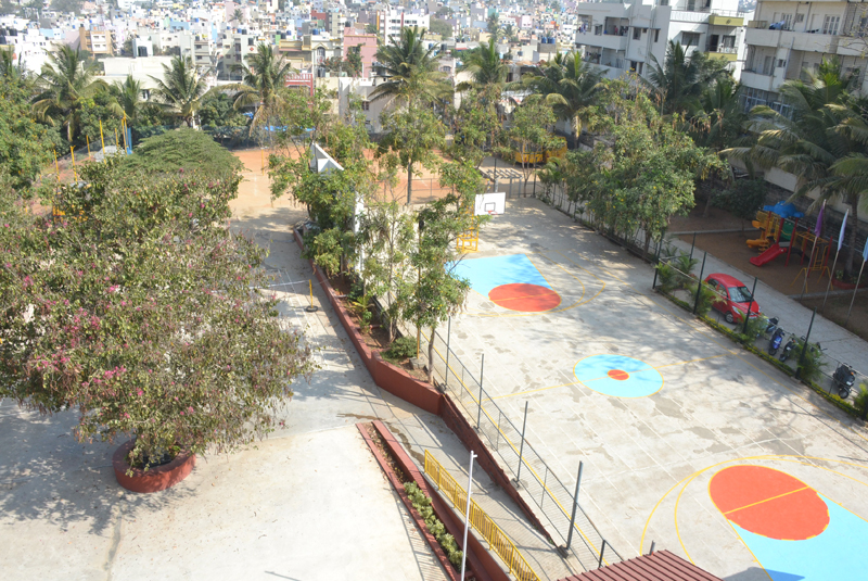 SHAARADE is nestled in the pristine location, over looking ISRO layout, away from the hustle and bustle of the city. Located on a 2.5 acres of land, the school is set up in a serene and tranquil surrounding. The attractive ambience and tranquility ensures creative thinking in the students.